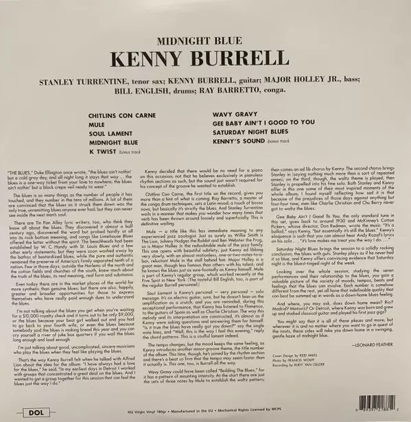 Midnight Blue von 1963 gilt als eine der aufregendsten Aufnahmen in Kenny Burrells langer und beeindruckender Karriere. Mit Stanley Turrentines Saxophon, das jede Note mit einem berauschenden Übermaß an Soul durchdringt, und Ray Barrettos Congas, die der bluesorientierten Musik eine lateinamerikanische Färbung verleihen, heizt Burrell die Stimmu...