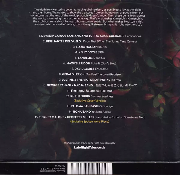 Spectacular new edition of "Late Night Tales" by Texas psych rockers Khruangbin! When Bonobo chose a track by unknown band Khruangbin for his "Late Night Tales" in 2013, no one could have guessed that the Houston trio would become international stars moments later thanks to their exotic sound. Immediately following their third studio album, "Mor...