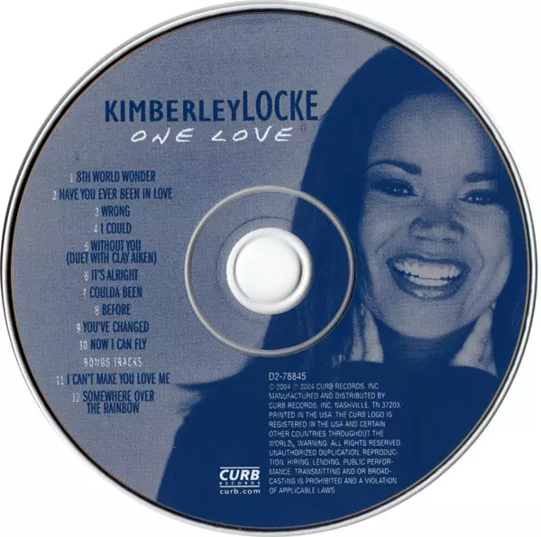 Kimberley Locke: One Love Die Version auf CD in Standard- Auflage. Diese besondere Auflage wurde veröffentlicht in USA im Verlag Curb Records am 4. Mai 2004. Album Genres übergreifend Rock, Pop, Funk / Soul, Pop Rock, Contemporary R&B und Soft Rock.
