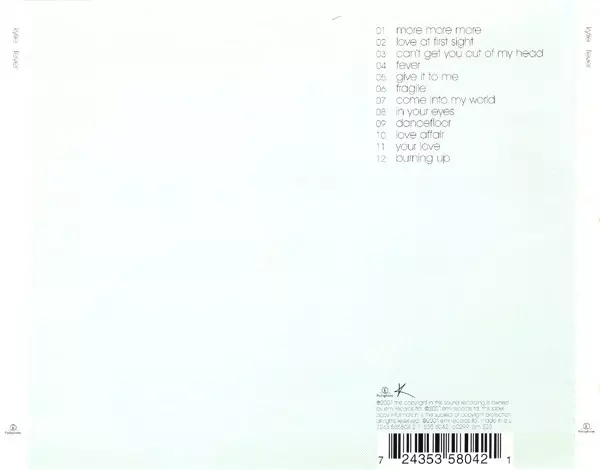 Kylie Minogue: Fever Die Version auf CD in Standard- Auflage. Diese besondere Auflage wurde veröffentlicht in Europa im Verlag Parlophone am 30. Oktober 2001.