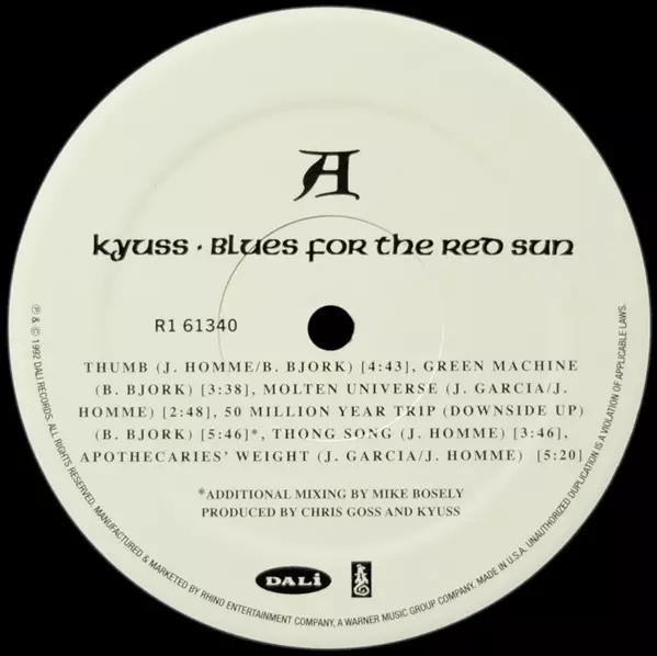 "Blues for the Red Sun" is the second studio album by the American rock band Kyuss from Palm Desert, released in 1992. Although the album received mostly positive reviews, it sold relatively poorly commercially - only 39,000 units. It has since become a highly influential album within the stoner rock genre.