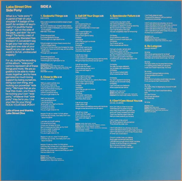 Lake Street Dive: Side Pony Die Version auf Vinyl LP in Standard- Auflage. Diese besondere Auflage wurde veröffentlicht in Europa im Verlag Nonesuch am 26. Februar 2016. Album Genres übergreifend Pop und Funk / Soul.