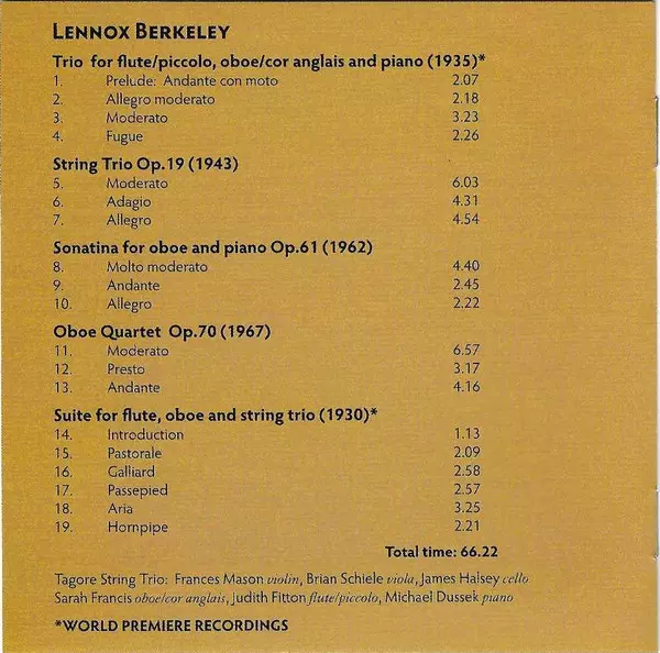 | Künstler | Lennox Berkeley | Sarah Francis | Michael Dussek | Judith Fitton | Tagore String Trio |