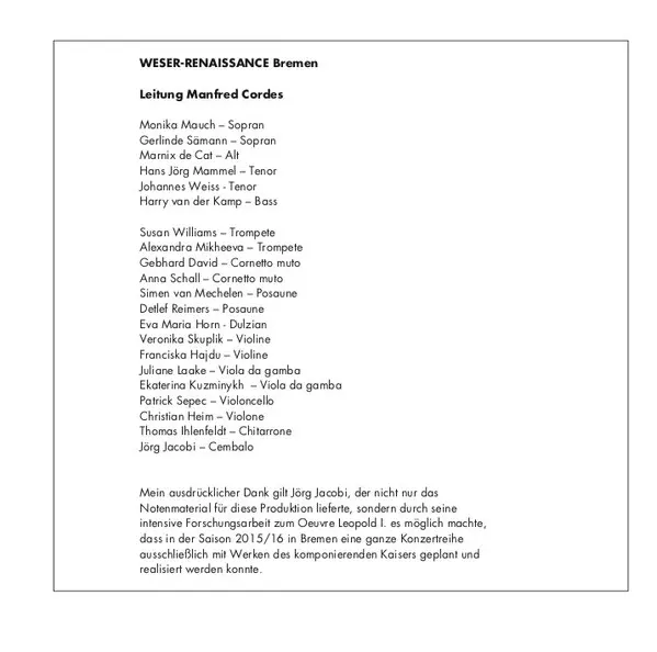 Weser-Renaissance is not an individual artist, composer, or band but rather a term that could refer to the Renaissance period in the Weser region of Germany or to an ensemble that specializes in music from the Renaissance and early Baroque periods. If you are referring to the ensem...