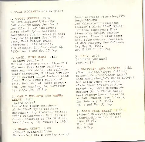 Baritone Saxophone Alvin Tyler | Bass Frank Fields | Drums Earl Palmer | Guitar Roy Montrell | Tenor Saxophone Lee Allen | Written-By Enotris Johnson, Richard Penniman