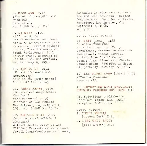 Bass Jimmy Rice | Drums Charles Connor | Guitar Thomas Harwell | Piano Lucas Fats Gonder | Tenor Saxophone Danny Carmichael, Wilbert Smith | Written-By Richard Penniman