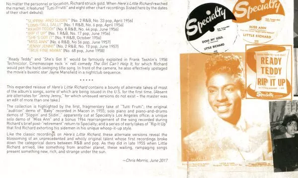 Little Richard: Here's Little Richard DLX Die Version auf 2CD in deluxe Auflage. Diese besondere Auflage wurde veröffentlicht in USA im Verlag Craft Recordings In Zusammenarbeit mit Specialty am 10. November 2017. Album Genres übergreifend Rock, Blues, Rhythmus und Blues und Rock & Roll. 60th Anniversary Deluxe Edition.