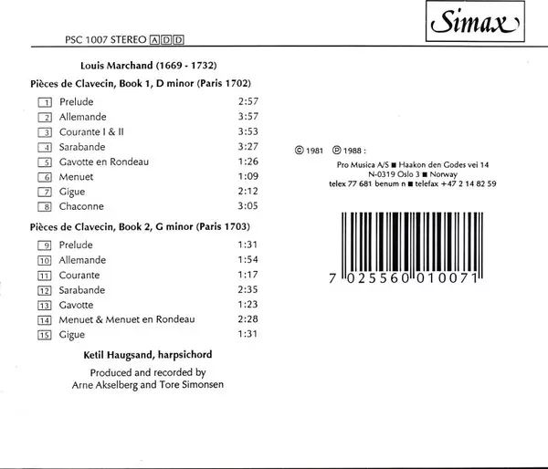 | Pieces De Clavecin, Book 1, D Minor (Paris 1702) | ||