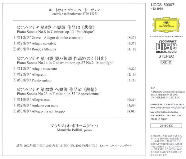 | Titel | Piano Sonatas No.8 "Pathetique" / No.14 "Moonlight" / No.23 "Appassionata" |