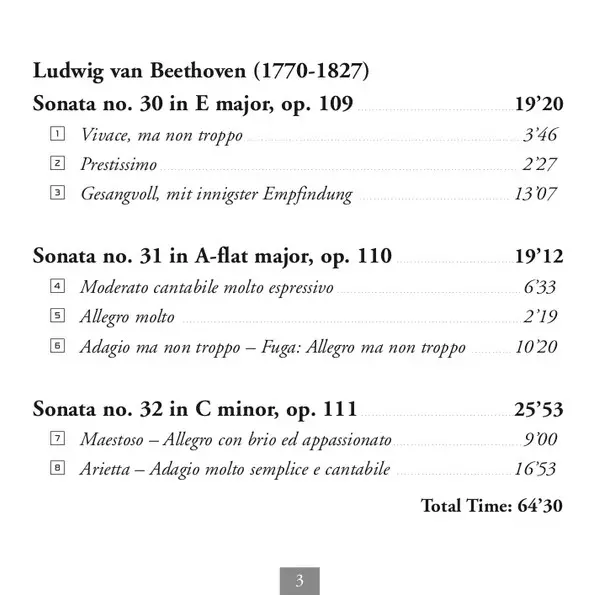 Titel | Beethoven's Last Piano Sonatas Op. 109. 110, 111 |