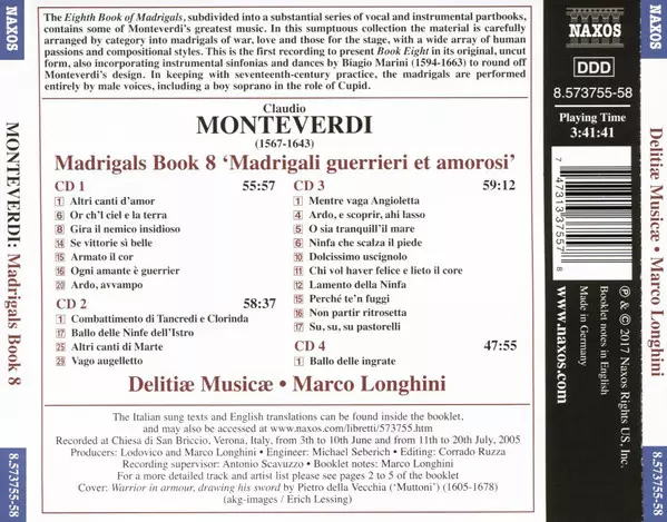 | Titel | Madrigals Book 8; Madrigali Guerrieri Et Amorosi |