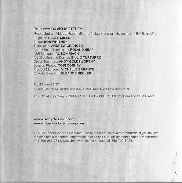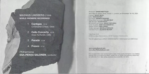 | Künstler | Philharmonia Orchestra | Esa-Pekka Salonen | Anssi Karttunen | Magnus Lindberg |