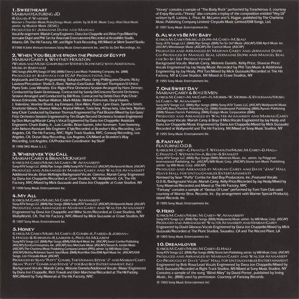 | Backing Vocals David Cole, Trey Lorenz | Engineer Acar Key, Bruce Miller | Engineer [Mix] Bob Rosa | Mixed By Clivillés & Cole, Mariah Carey | Producer, Arranged By Clivillés & Cole | |||