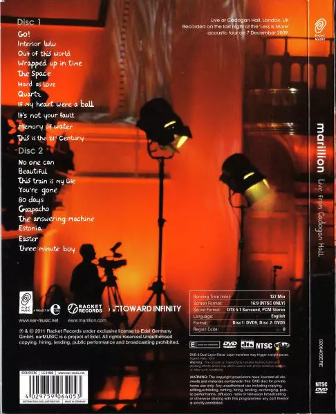 Marillion have been one of the most innovative and musically diverse bands on the English music scene for over 25 years. The Brits have built a loyal fan base over the years, having released over 15 studio albums and more than 20 UK Top 40 hits. With a unique connection between artist and audience, each live performance by the band has always been an exceptional experience. The final night of the acoustic 'Less Is More' tour on 7 December 2009 in the extraordinary intimate setting of London's Cadogan Hall, bathed in red light, was once again an immersive musical experience. The first part of the evening saw Marillion present their latest studio album 'Less Is More' with highlights 'Interior Lulu', 'It's Not Your Fault' and 'If My Heart Were A Ball'. The second part of the evening featured 10 classic Marillion songs such as "80 Days," "Easter" and "You're Gone," which the audience enthusiastically celebrated. The concert is dedicated to the album "Less Is More", on which Marillion completely reinvented themselves and their songs, transforming them into alternative acoustic arrangements. Following this experimental approach, the band plays dulcimer, autoharp, celesta, chimes, xylophone and pipe organ, impressively demonstrating the musical flexibility of this exceptional band while giving more space to Steve Rothery's superb guitar playing and Hogarth's incredible voice. Marillion have been one of the most innovative and musically diverse bands on the English music scene for over 25 years. The Brits have built a loyal fan base over the years, having released more than 15 studio albums and more than 20 UK Top 40 hits. With a unique connection between artist and audience, each live performance by the band has always been an exceptional experience. The final night of the acoustic 'Less Is More' tour on 7 December 2009 in the extraordinary intimate setting of London's Cadogan Hall, bathed in red light, was once again an immersive musical experience. The first part of the evening saw Marillion present their latest studio album "Less Is More" (earMUSIC 2009) with highlights "Interior Lulu", "It's Not Your Fault" and "If My Heart Were A Ball". The second half of the evening featured 10 classic Marillion songs such as "80 Days," "Easter" and "You're Gone," which the audience enthusiastically celebrated. The concert is dedicated to the album "Less Is More", on which Marillion completely reinvented themselves and their songs, transforming them into alternative acoustic arrangements. Following this experimental approach, the band plays dulcimer, autoharp, celesta, chimes, xylophone and pipe organ, among other instruments, impressively demonstrating the musical flexibility of this exceptional group while giving more space to Steve Rothery's superb guitar playing and Hogarth's incredible voice. Marillion prove once again that they can reinvent themselves time and time again! Review , "Crystal clear picture, crystal clear sound, very much like a concert, you don't get any better than this." (Good Times, 04/05/2011) , "For Marillion fans, the band's concerts are more than just a musical event, they are celebrated as a mass, an iconic event." (stereo, 05/05/2011)