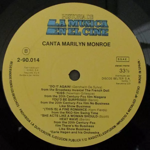 | B3 | Marilyn Monroe: You'd Be Surprised (From The 20th Century-Fox Film No Business Like Show Business) | ||