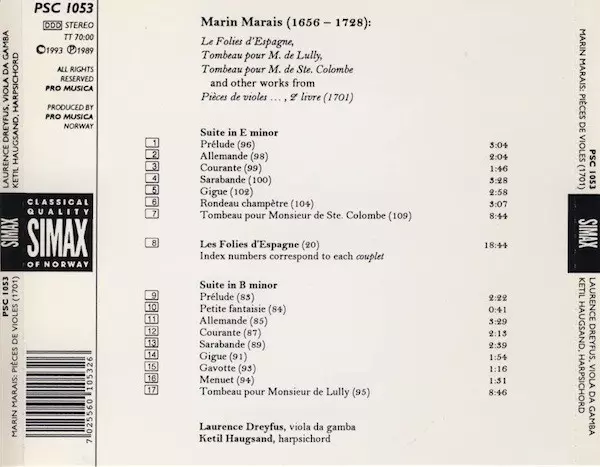 | Künstler | Marin Marais | Ketil Haugsand | Laurence Dreyfus |