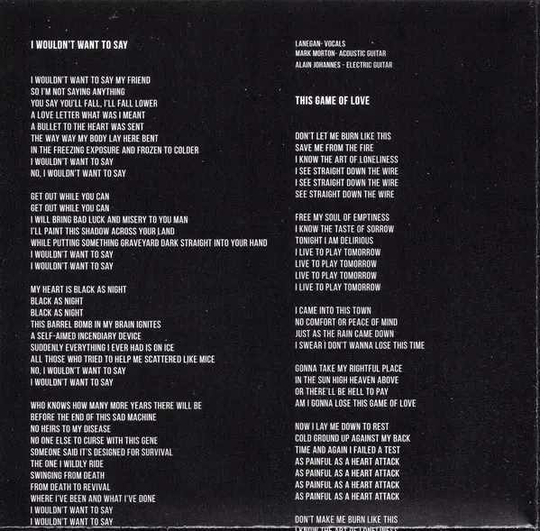 Acoustic Guitar Mark Morton (2) | Electric Guitar Alain Johannes | Vocals Mark Lanegan