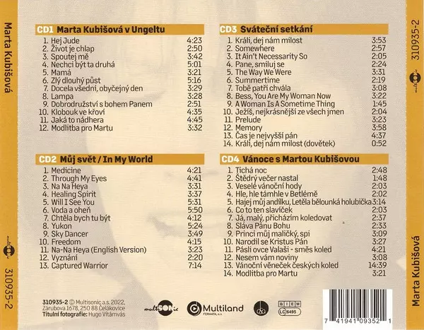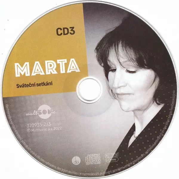 Marta Kubišová: Marta Die Version auf 4CD in Standard- Auflage. Diese besondere Auflage wurde veröffentlicht in Tschechische Republik im Verlag Multisonic In Zusammenarbeit mit Multiland Fermata, a.s. Im Jahr 2022. Album Genres übergreifend Folk, World, & Country, Blues und Funk / Soul.