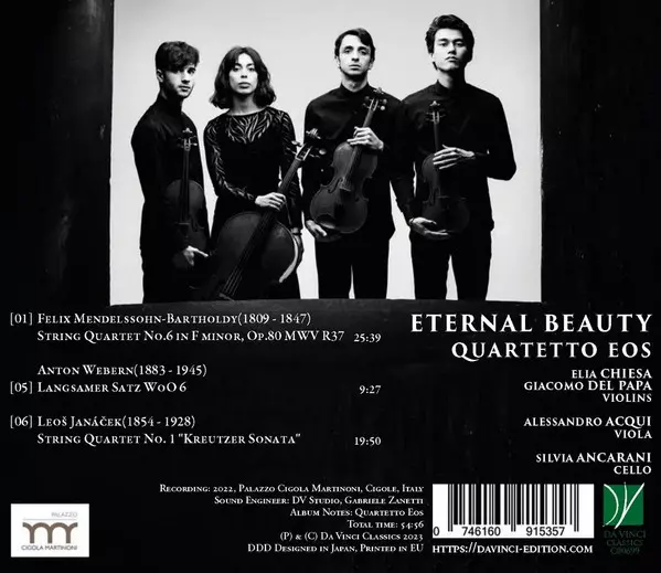 | Künstler | Leoš Janáček | Felix Mendelssohn-Bartholdy | Anton Webern | Quartetto Eos |