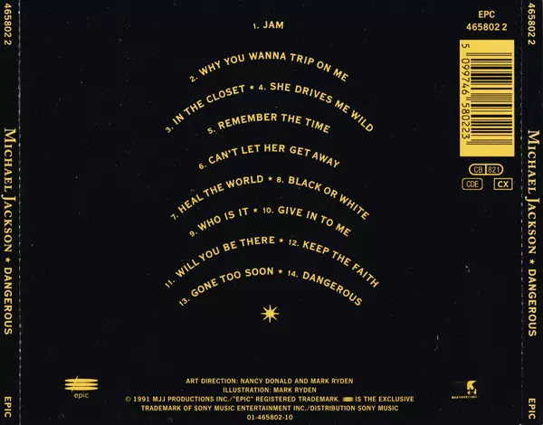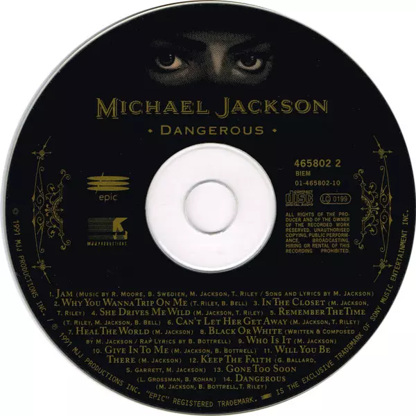 Michael Jackson: Dangerous Die Version auf CD in Standard- Auflage. Diese besondere Auflage wurde veröffentlicht in Europa im Verlag Epic In Zusammenarbeit mit MJJ Productions Im Jahr 1991.