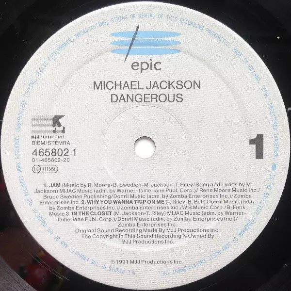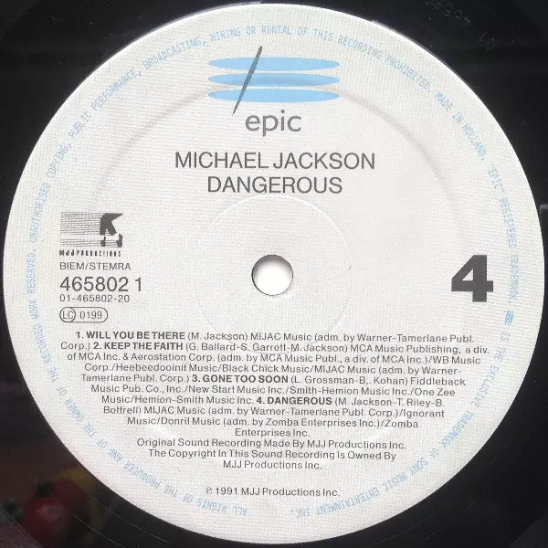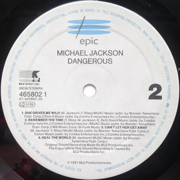 Michael Jackson: Dangerous Die Version auf Vinyl 2LP in Standard- Auflage. Diese besondere Auflage wurde veröffentlicht in Europa im Verlag Epic Im Jahr 1991.