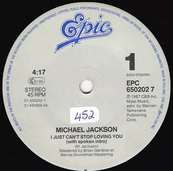 | A | Michael Jackson, Siedah Garrett: I Just Can't Stop Loving You (with spoken intro) | 4:17 min | |