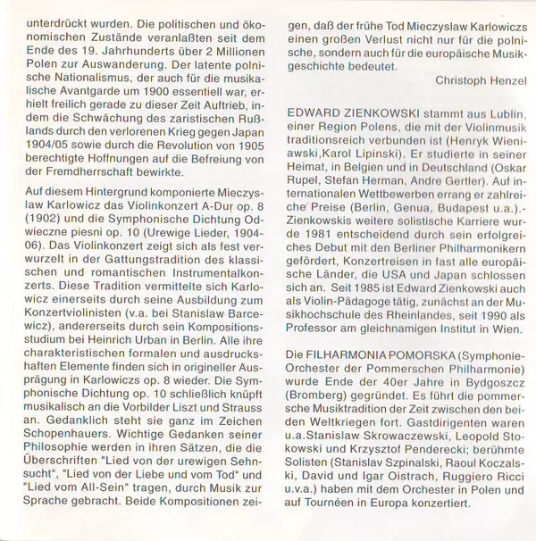 Künstler | Mieczysław Karłowicz | Takao Ukigaya | Filharmonia Pomorska | Edward Zienkowski |