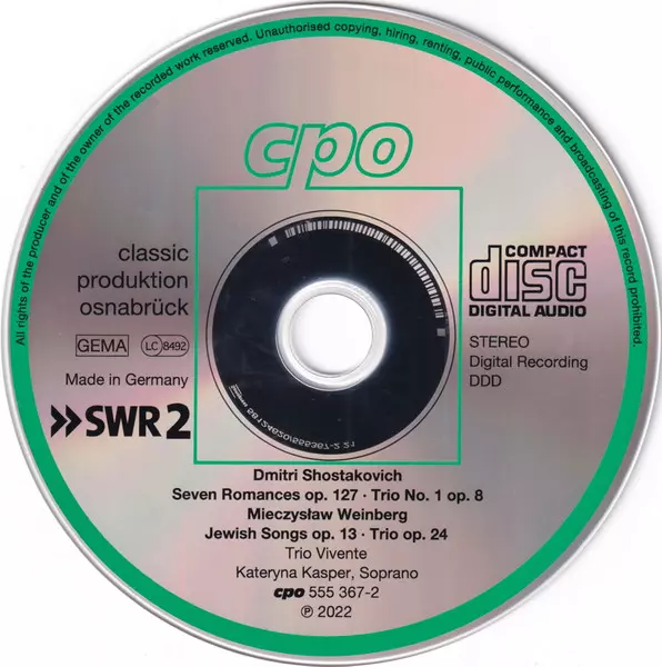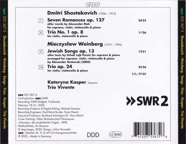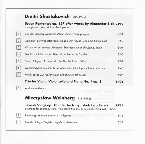 | Dmitri Shostakovich, Trio Vivente, Kateryna Kasper: Seven Romances Op. 127 | 24:52 min | |