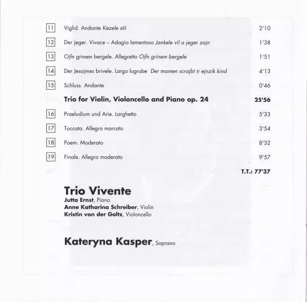 | Mieczysław Weinberg, Trio Vivente, Kateryna Kasper: Jewish Songs Op. 13 | 12:51 min | |