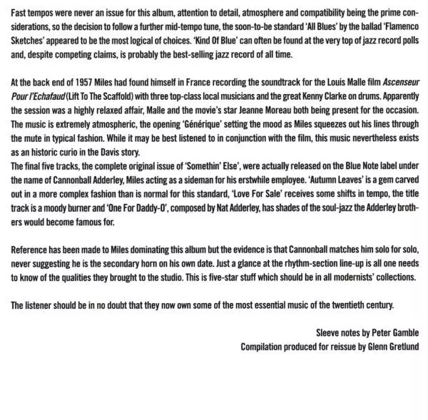 Es ist so viel über Miles Davis' »Kind Of Blue« gesagt und geschrieben worden, dass es praktisch unmöglich ist, alle notwendigen Informationen auf die Länge dieser Abhandlungen zusammenzufassen. Wir könnten einfach einige Fakten auflisten (weltweit bestverkauftes Jazz-Album aller Zeiten). Wir könnten versuchen, zu erklären, warum es das beste Ja...
