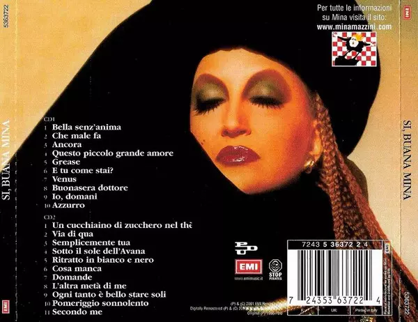 Mina: Si, Buana Die Version auf 2CD in remastered Auflage. Diese besondere Auflage wurde veröffentlicht in Italien im Verlag PDU In Zusammenarbeit mit EMI am 26. Oktober 2001. Album Genres übergreifend Rock, Pop, Funk / Soul, Pop Rock und Disco.