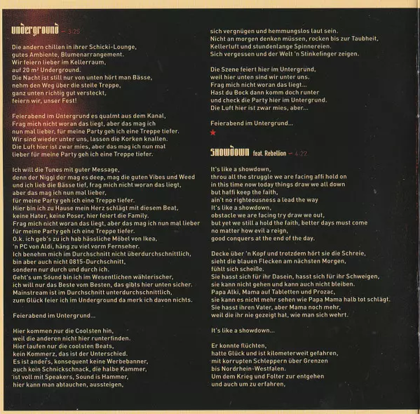 Bass Fabian Rucker, Hermann Mayr, Martin Ohrwalder, Philip Harant | Featuring Rebellion The Recaller | Music By Ernesto "DJ X" Mitchell, Paul "Cash Flow" Mitchell, Paul "Father P" Mitchell | Text By Mono (9), Nikitaman