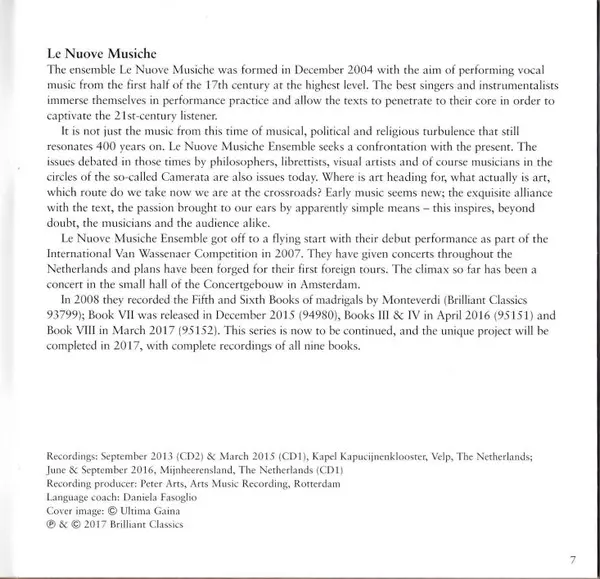 | Künstler | Claudio Monteverdi | Krijn Koetsveld | Le Nuove Musiche |