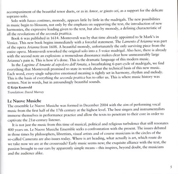 Künstler | Claudio Monteverdi | Krijn Koetsveld | Le Nuove Musiche |