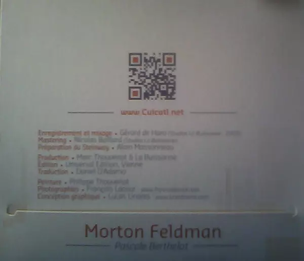 | Künstler | Morton Feldman | Pascale Berthelot |