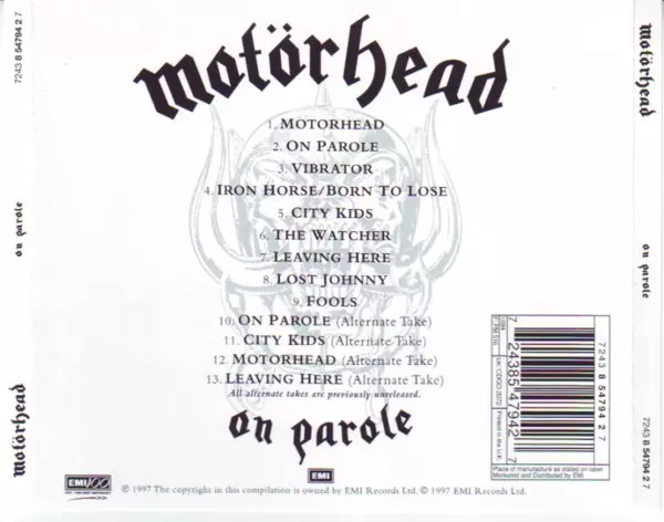 Motörhead's third album On Parole was released in 1979. It was the band's first album released on Chiswick Records and was produced by Jimmy Miller. On Parole was the band's first album to feature Phil "Philthy Animal" Taylor on drums. It was also the band's first album to feature Lemmy Kilmister singing and playing bass guitar. The album was a ...