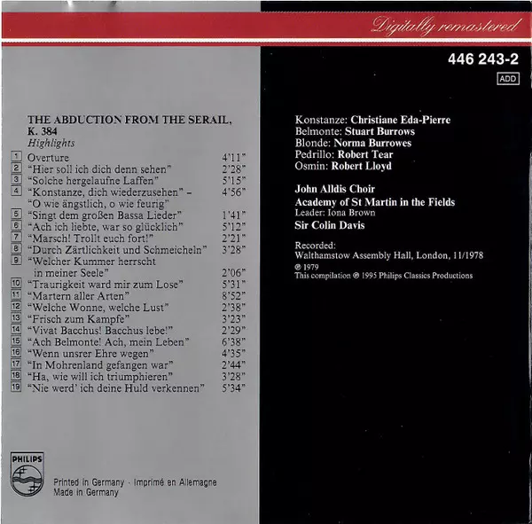 | Künstler | Wolfgang Amadeus Mozart | The Academy Of St. Martin-in-the-Fields | Sir Colin Davis | Robert Tear | Robert Lloyd | John Alldis Choir | Stuart Burrows | Christiane Eda-Pierre | Norma Burrowes |