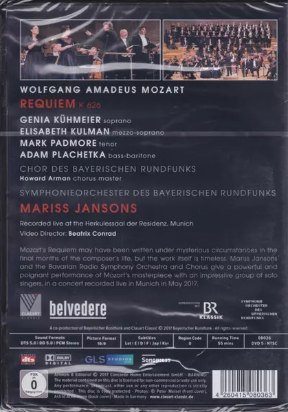 | Künstler | Wolfgang Amadeus Mozart | Symphonie-Orchester Des Bayerischen Rundfunks | Adam Plachetka | Mariss Jansons | Chor Des Bayerischen Rundfunks | Mark Padmore | Genia Kühmeier | Elisabeth Kulman |