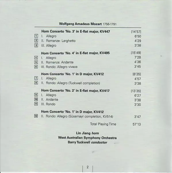 | Horn Concerto 'No. 2' In E-flat Major, KV 417 | 13:35 min | |