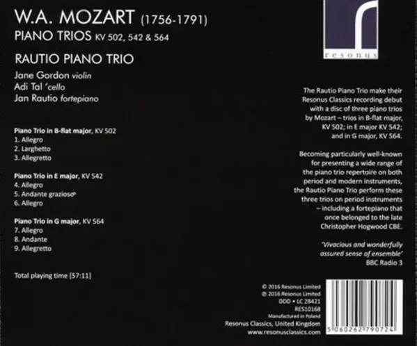 | Titel | Piano Trios KV 502, 542, 564 |