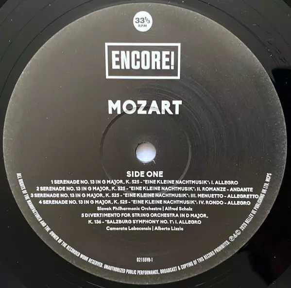 | Künstler | Wolfgang Amadeus Mozart | Alberto Lizzio | Alfred Scholz | Slovak Philharmonic Orchestra | Camerata Labacensis |