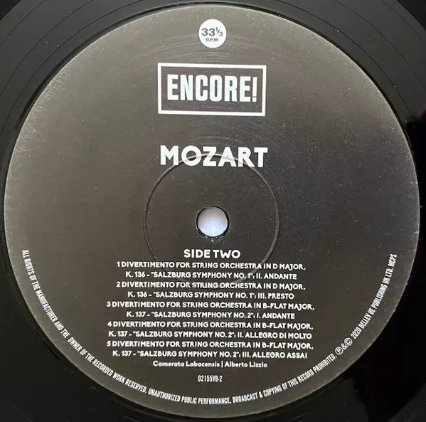| Divertimento For String Orchestra In B-Flat Major, K. 137 - "Salzburg Symphony No. 2" |