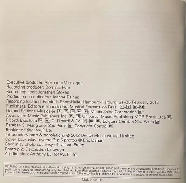 Nelson Freire: Brasileiro Villa-Lobos & Friends Die Version auf CD in Standard- Auflage. Diese besondere Auflage wurde veröffentlicht in Europa im Verlag Decca am 21. August 2012. Album Genres übergreifend Klassische Musik, Lateinamerikanische Musik, Modernism, Tango, Etude, Dances, Piano und Late Romantic.