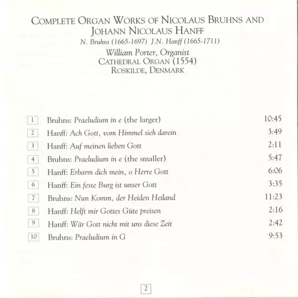 | Titel | Complete Organ Works Of Nicholas Bruhns And Johann Nicolaus Hanff |