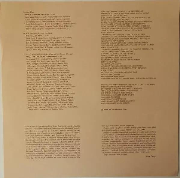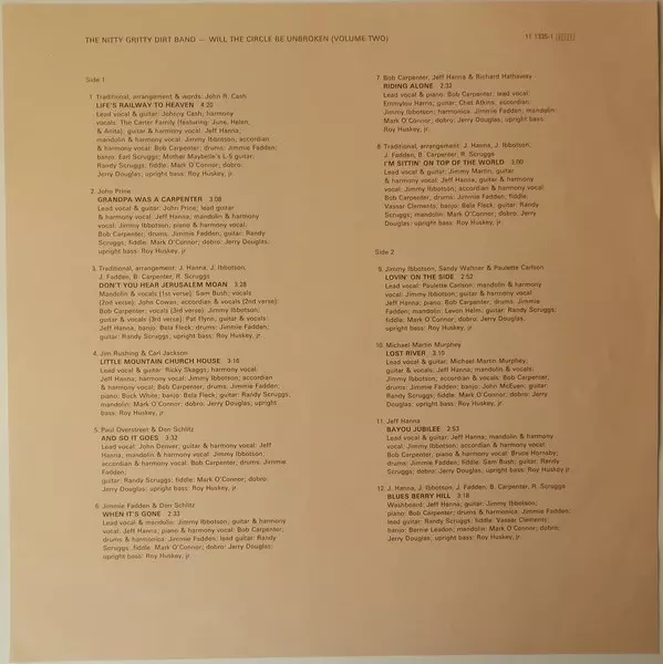 Nitty Gritty Dirt Band: Will The Circle Be Unbroken (Volume Two) Die Version auf Vinyl LP in Standard- Auflage. Diese besondere Auflage wurde veröffentlicht in Tschechoslowakei im Verlag Supraphon Im Jahr 1991. Album Genres übergreifend Rock, Folk, World, & Country, Bluegrass und Country-Rock.
