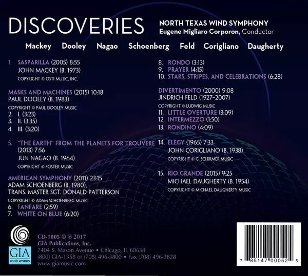 | Künstler | Jindřich Feld | John Corigliano | Michael Daugherty | Eugene Corporon | John Mackey | North Texas Wind Symphony | Jun Nagao | Paul Dooley | Adam Schoenberg |