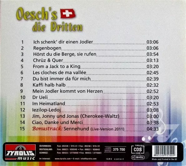 Oesch's die Dritten is a Swiss folk music family group from the Bernese Oberland, consisting of Hansueli , Annemarie , and their children Melanie, Kevin, and Mike. The band is particularly known for their yodeling and traditional Swiss music. They gained widespread popularity in Ge...