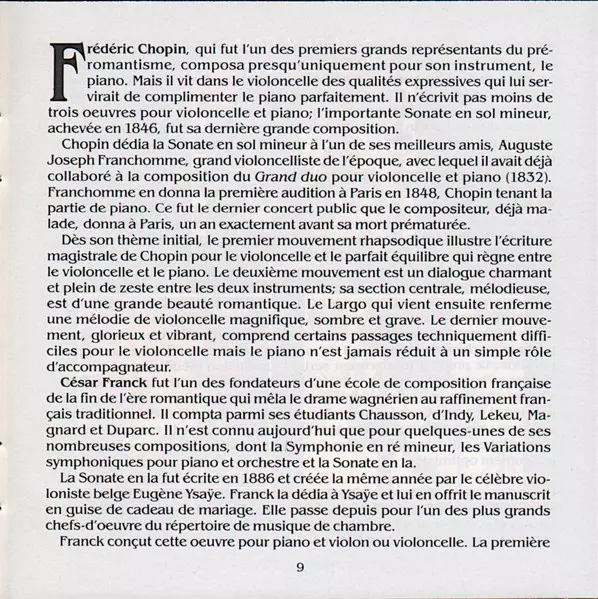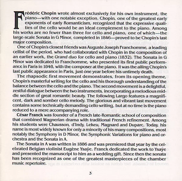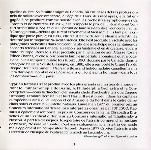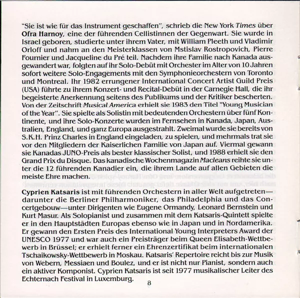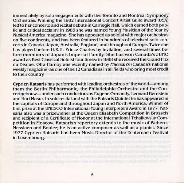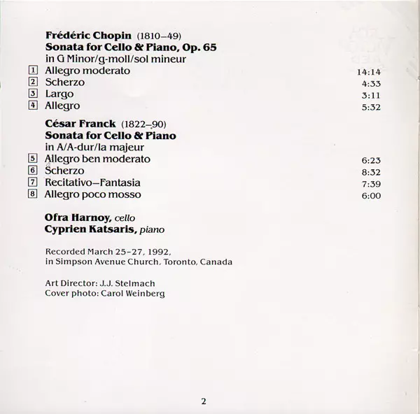 | Künstler | Frédéric Chopin | César Franck | Cyprien Katsaris | Ofra Harnoy |