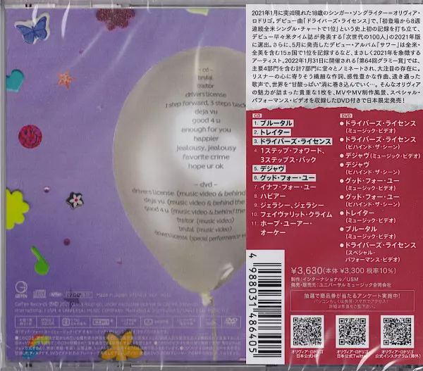 Olivia Rodrigo: サワー LTD Die Version auf CD/DVD in limitierte Auflage. Diese besondere Auflage wurde veröffentlicht in Japan im Verlag Geffen Records am 28. Januar 2022.