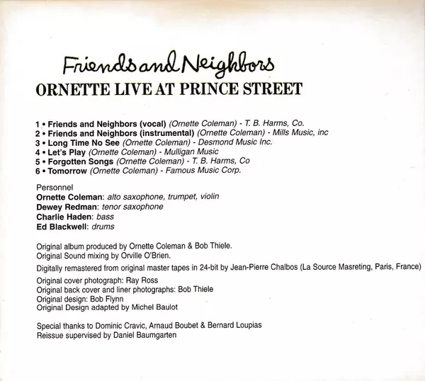 | Titel | Friends And Neighbors (Ornette Live At Prince Street) DIGI |